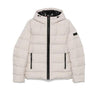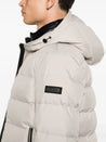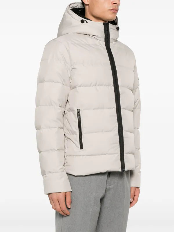 Tessuto trapuntato in gabardine tecnico idrorepellente con imbottitura in piuma.