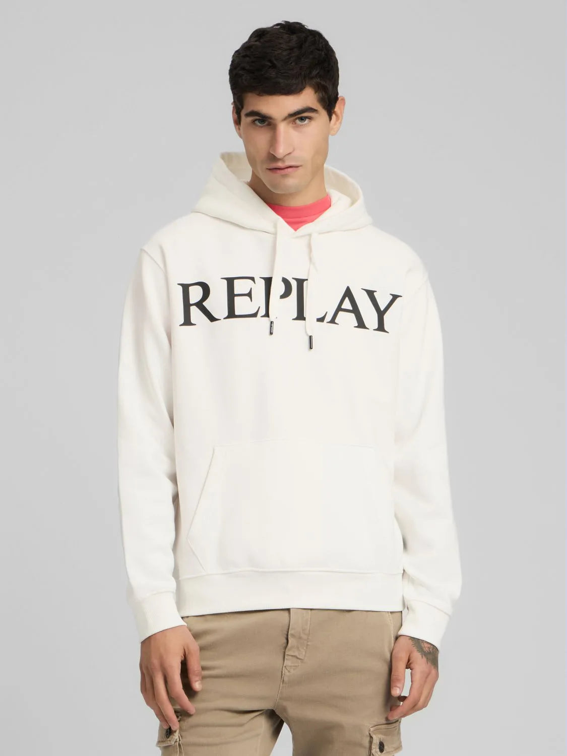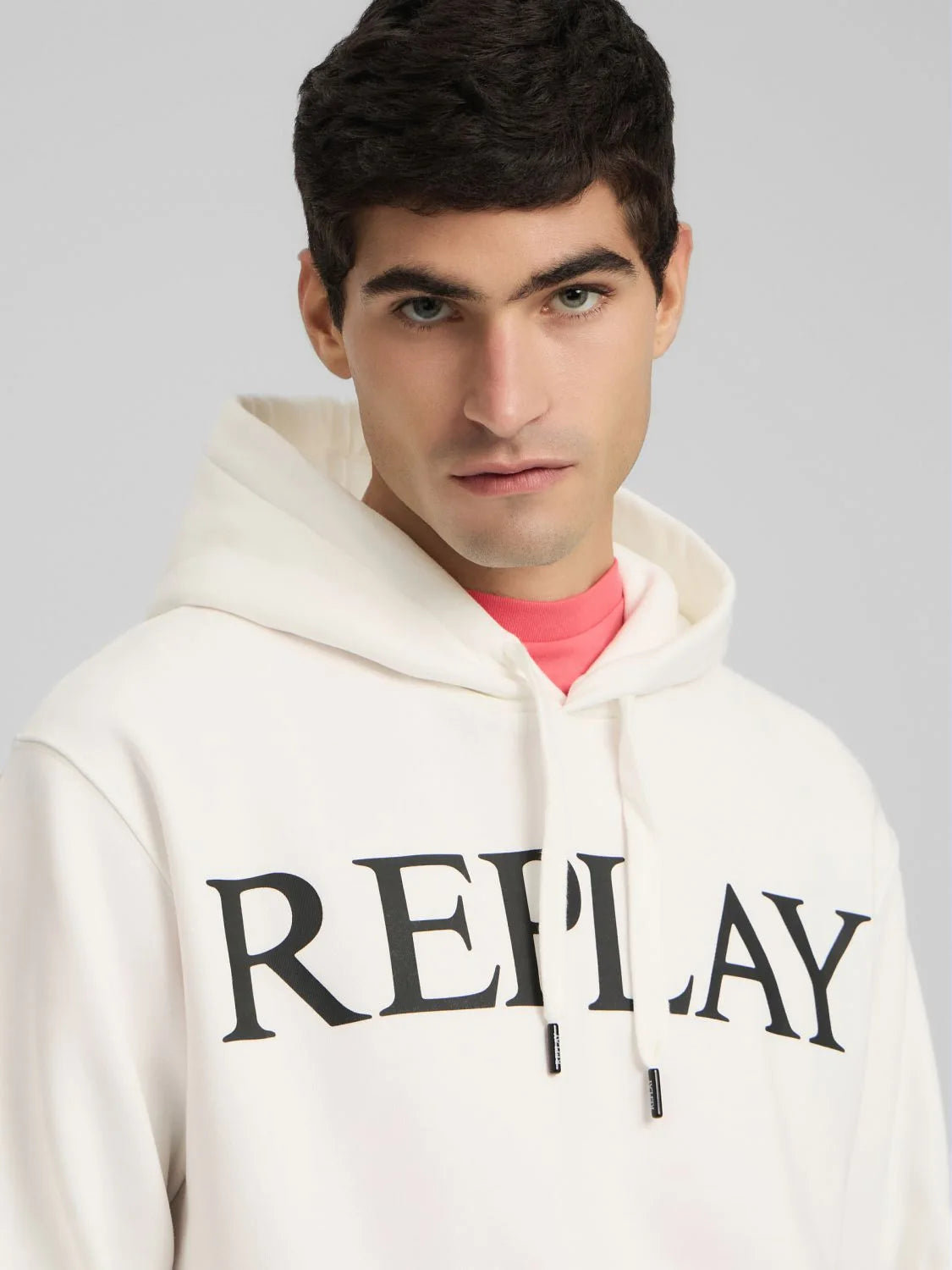 Felpa dotata di cappuccio con coulisse e realizzata in misto cotone garzato, garanzia di morbidezza e resistenza. Il modello a maniche lunghe dalla vestibilità regolare è caratterizzato da una tasca a marsupio e una lavorazione a costine su polsini e fondo capo. Il design si distingue per il maxi lettering Replay stampato a contrasto sul davanti e per l'etichetta logata sul fianco, espressione del DNA del brand.