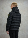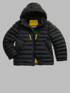 Piumino manica lunga realizzato in tessuto di poliestere con inserti in tessuto taslan entrambi riciclati. ciascun inserto è laserato ed incollato sul capo.