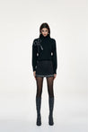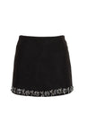 Gonna mini a trapezio, applicazione di fiori gioiello con strass.