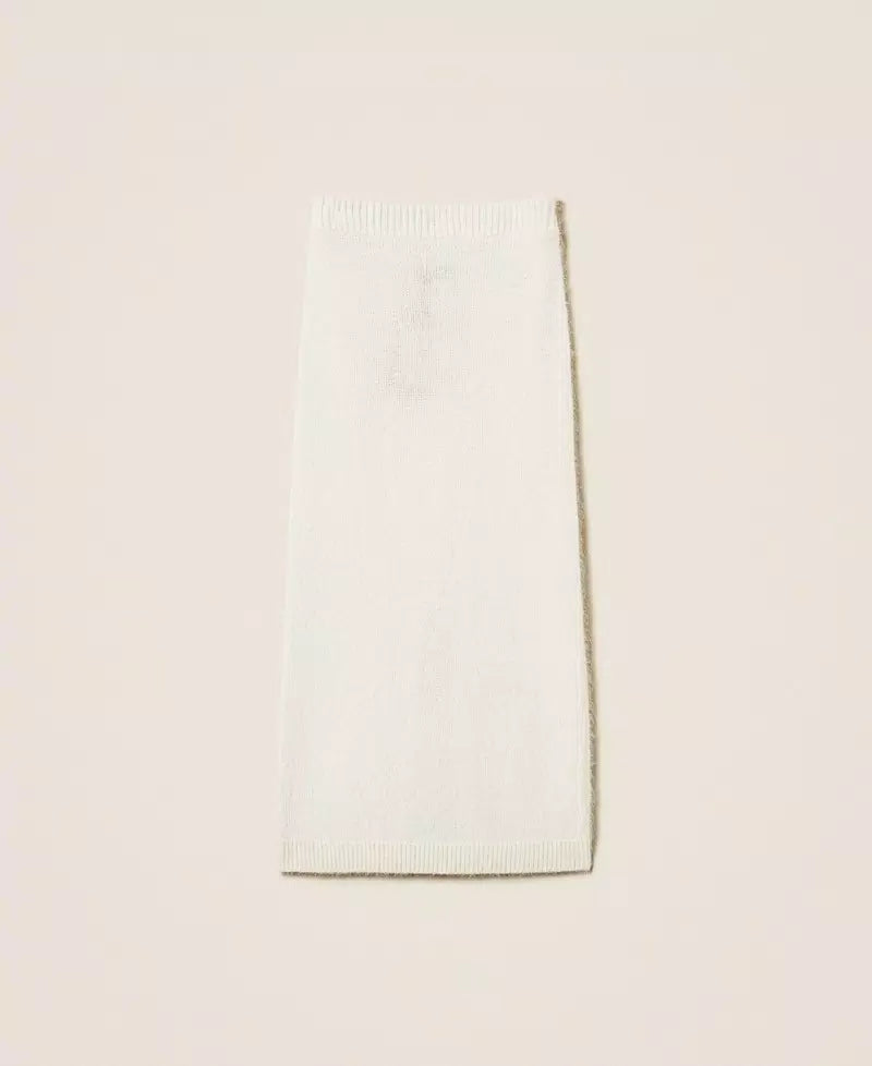 Gonna longuette in maglia di misto angora con lavorazione rasata, elastico interno in vita, spacco al fondo sul retro, placchetta logo Oval T e linea fitted.