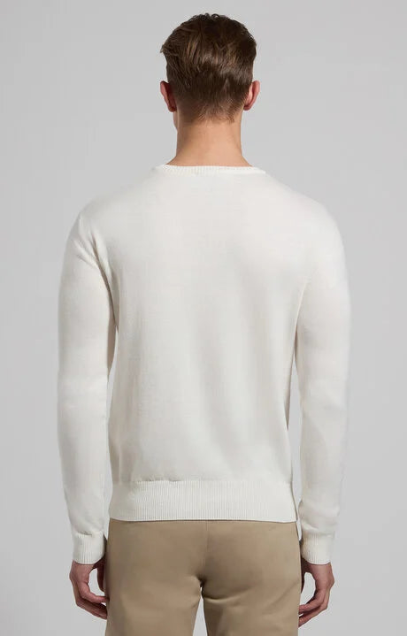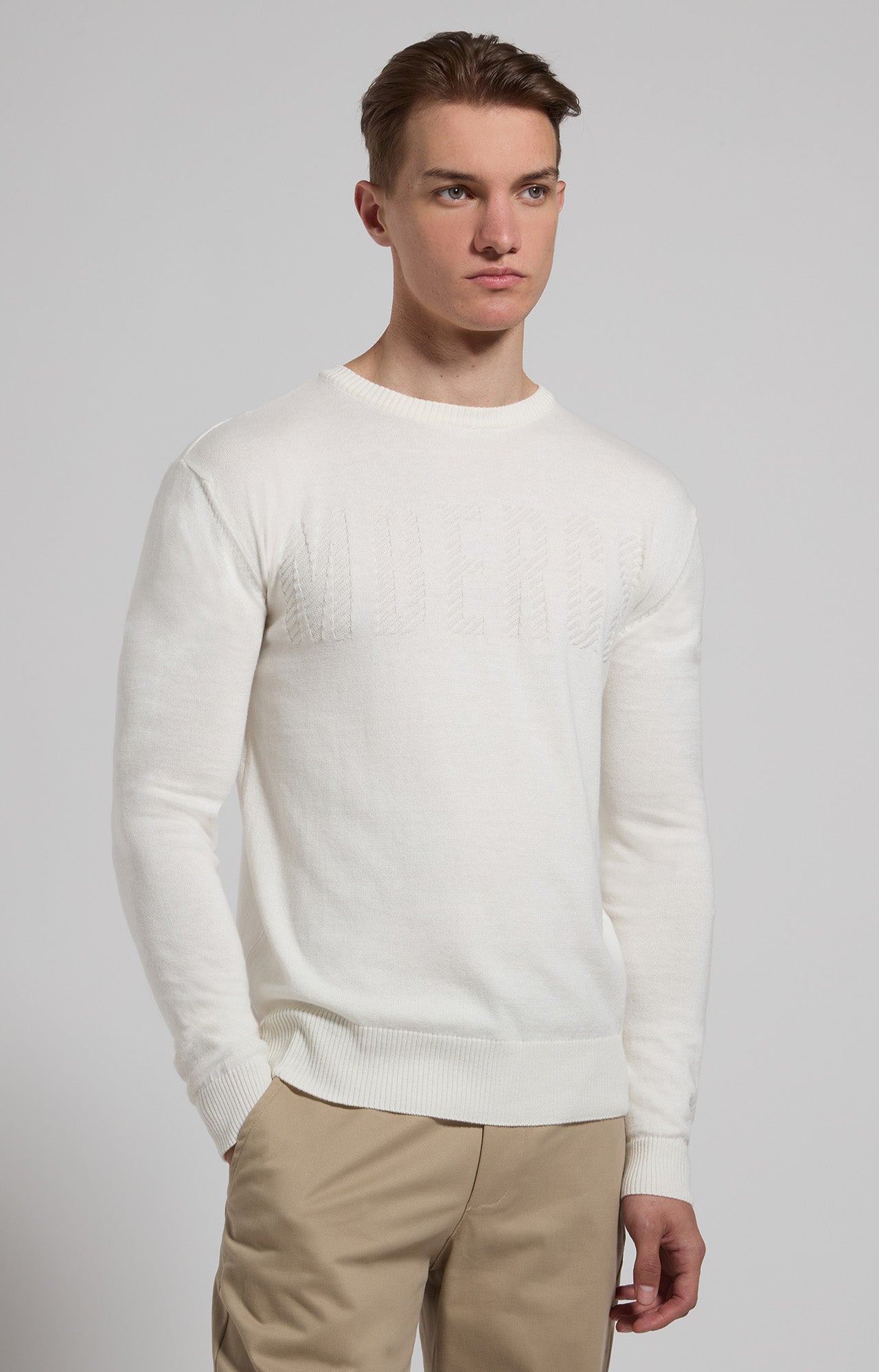 Maglia girocollo da uomo personalizzato dal maxi logo jacquard in tinta sul petto. Il maglione è dotato di maniche lunghe e bordi a costine.