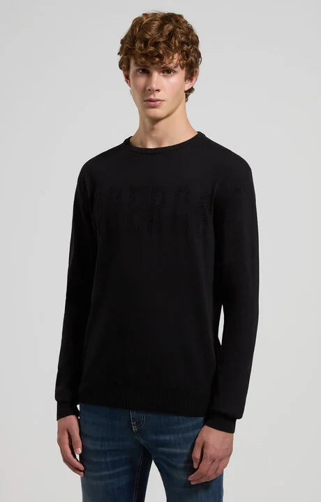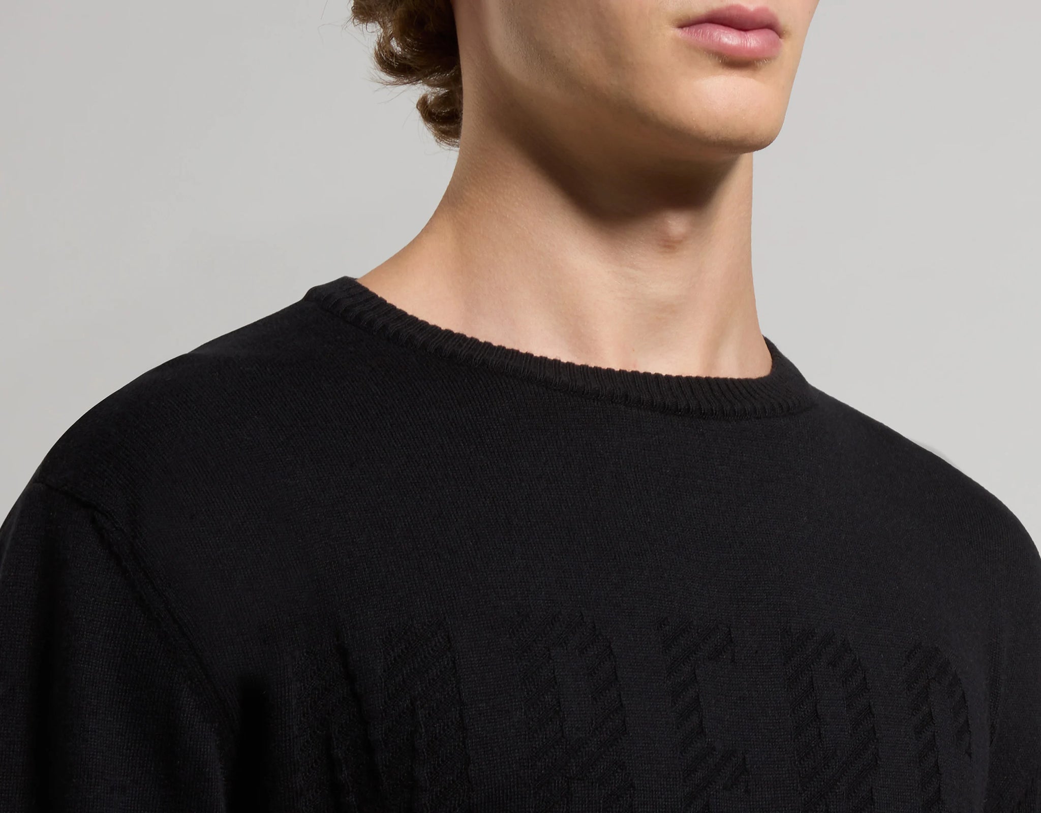 Maglia girocollo da uomo personalizzato dal maxi logo jacquard in tinta sul petto. Il maglione è dotato di maniche lunghe e bordi a costine.