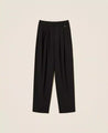 Pantaloni collezione Actitude con pieghe asimmetriche davanti, chiusura con zip e gancio a uomo, placchetta logo e linea ampia.